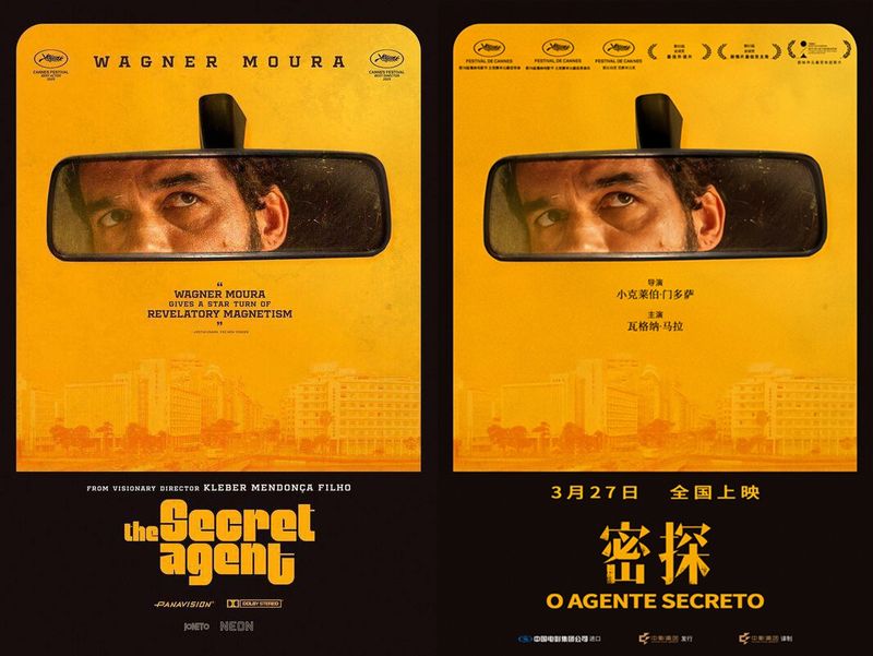 《密探》海报原创设计与内地定档海报对比。